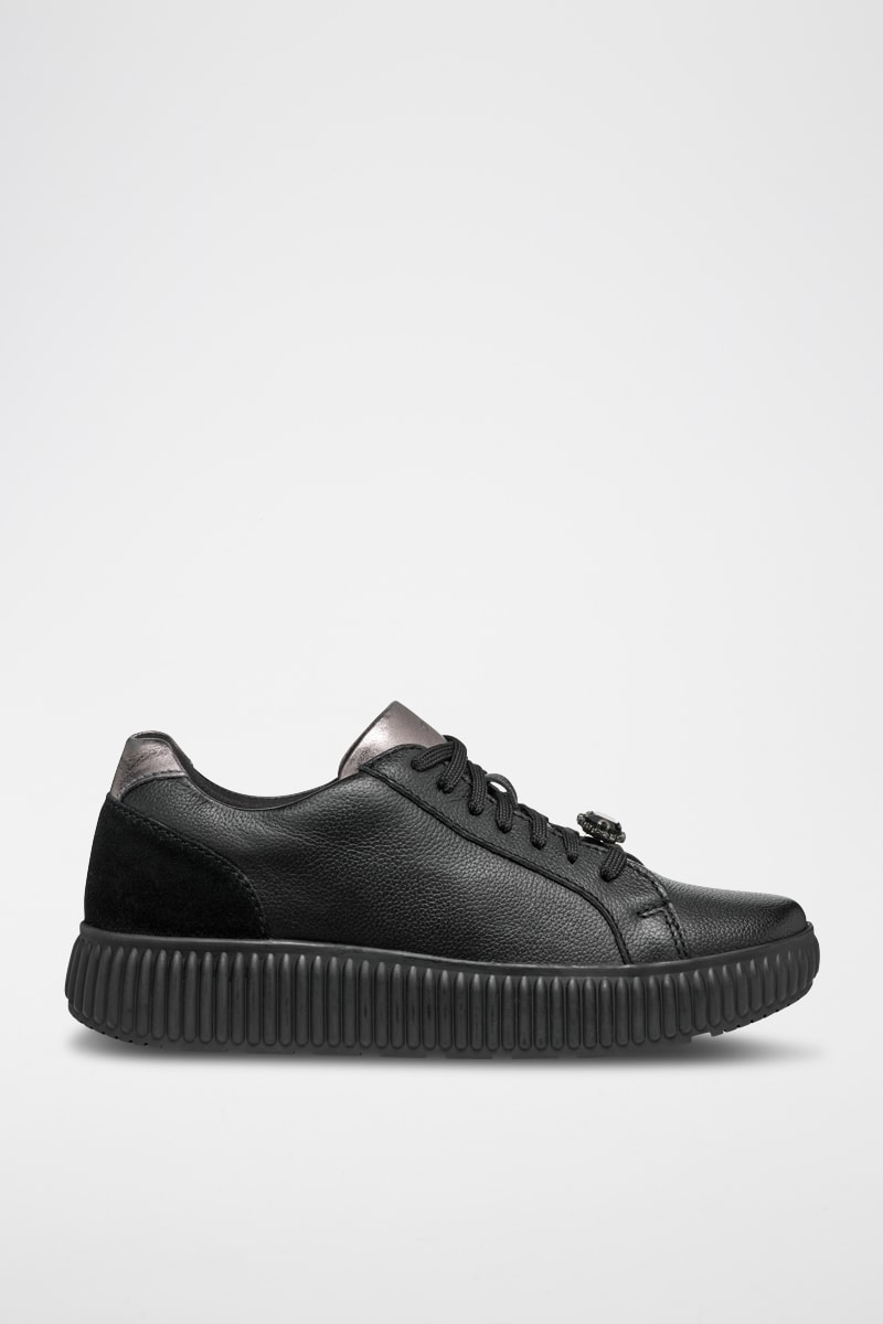Baskets plateformes en cuir grainé et cuir de veau nubuck.