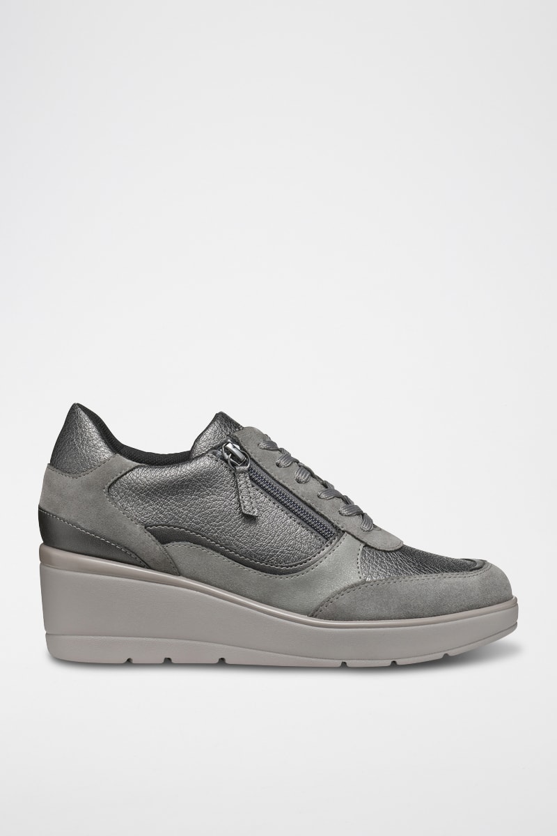 Baskets compensées en cuir de veau nubuck Ilde - Gris
