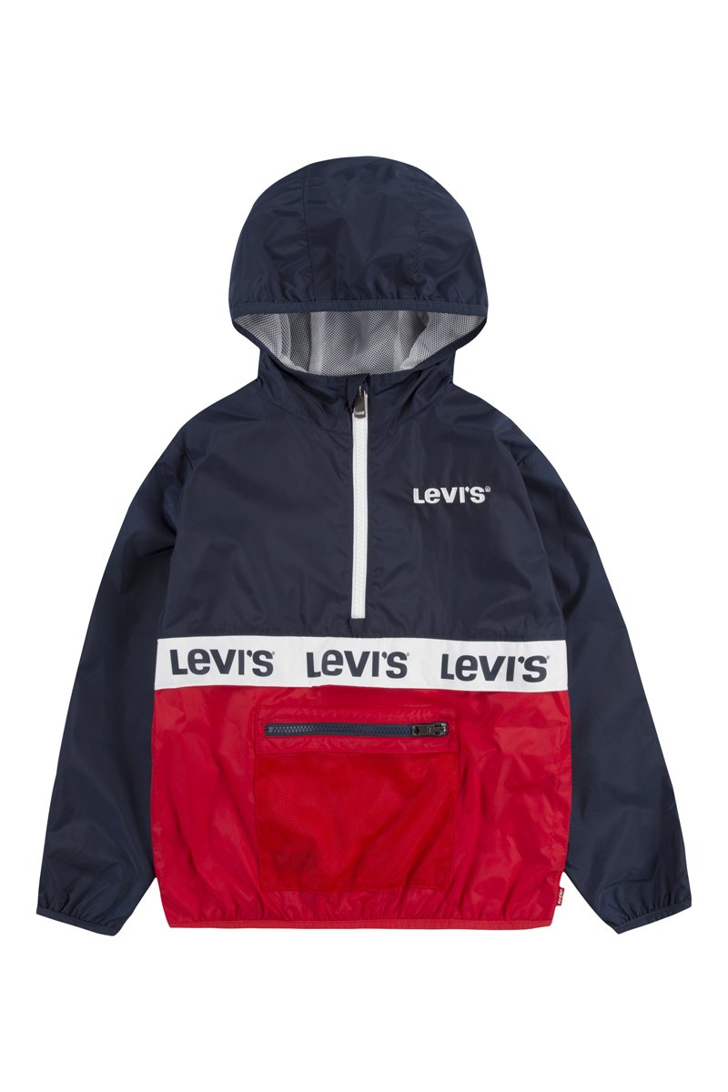 Coupe-vent à capuche - Bleu marine et rouge