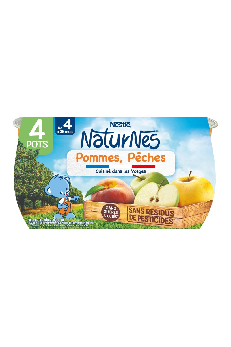 Ingrédients : Pommes 74,9%, pêches 24,9%, vitamine C.
