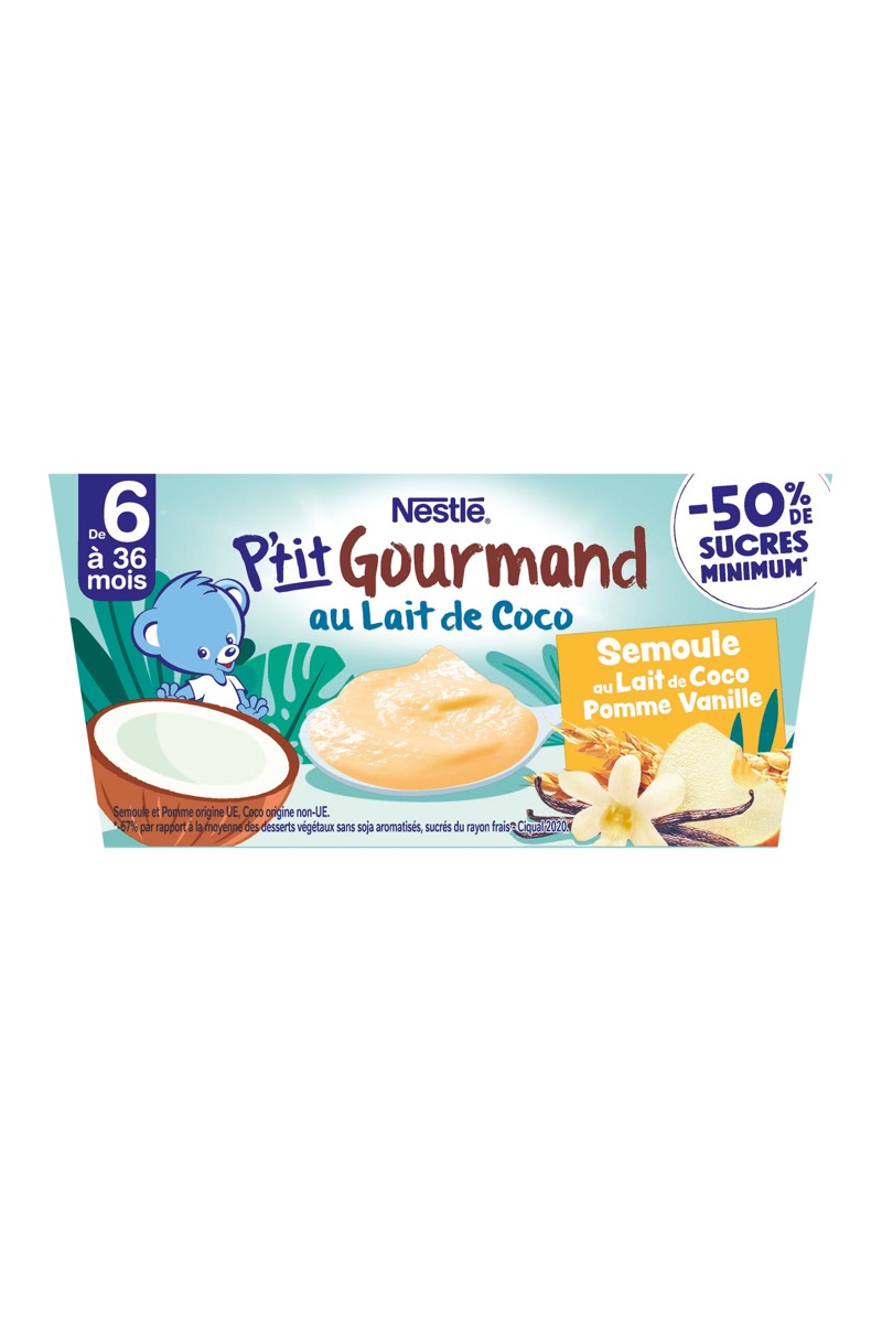P'tit Gourmand au lait de coco, semoule, pomme et vanille.​