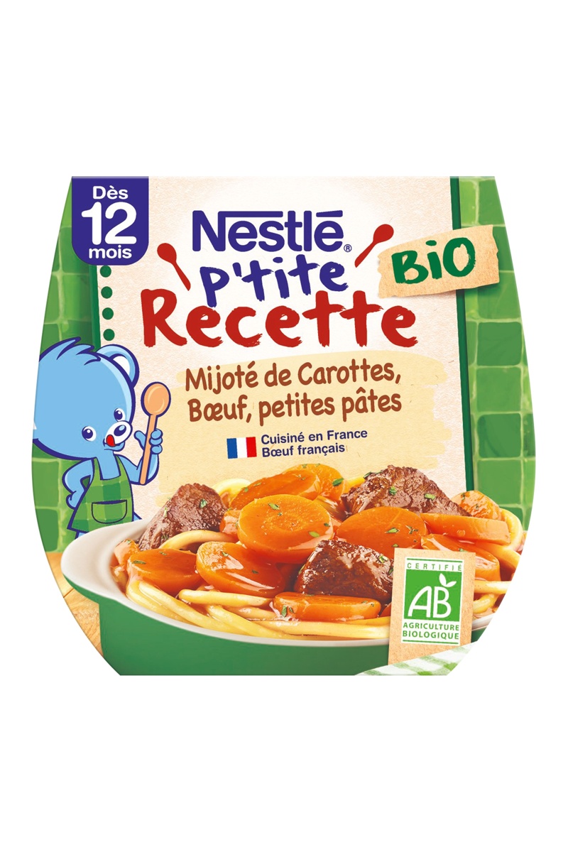 Natures Mijoté de carottes, bœuf et petites pâtes bio.
