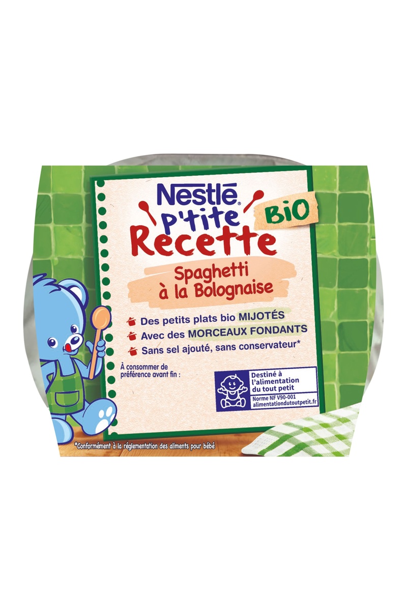 Ingrédients : Eau de cuisson, purée de tomates* à base de concentré 24%, carottes* 18%, viande de bœuf* 8% (origine France), pâtes* cuites 7,5% (eau, semoule de blé, blanc d'œuf), amidon*, oignons*, huile de colza*, ail*, basilic*, origan *. Peut contenir de la moutarde.