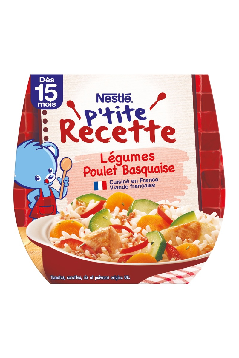Ingrédients : Purée de tomates à base de concentré 28%, eau de cuisson, carottes 11%, riz cuit 10,5%, poivrons rouges 10%, viande de poulet 8% (Origine France), oignons, amidon, huile de colza, sel, ail, romarin, laurier.