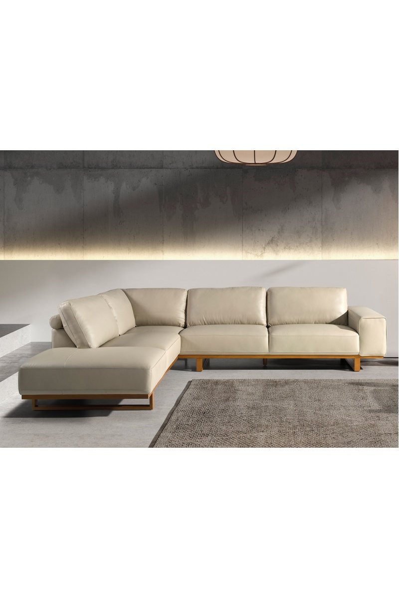 Canapé d’angle gauche - Blanc - 5 places - En cuir de vachette