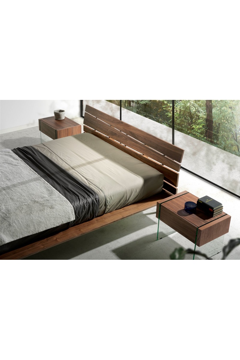 Table de chevet - Imitation noyer et transparent