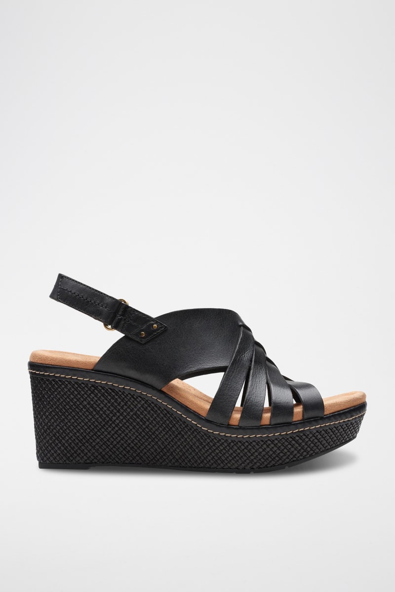Sandales compensées en cuir.