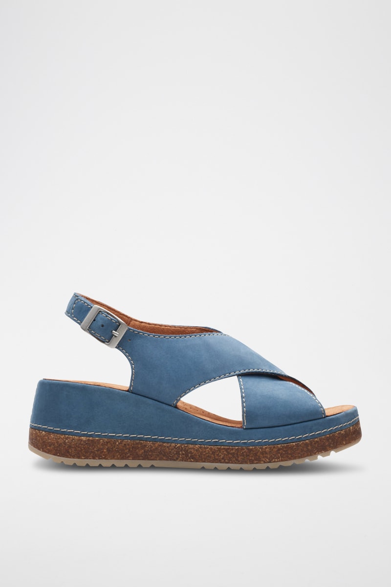 Sandales compensées en nubuck Kassanda - Bleu cobalt