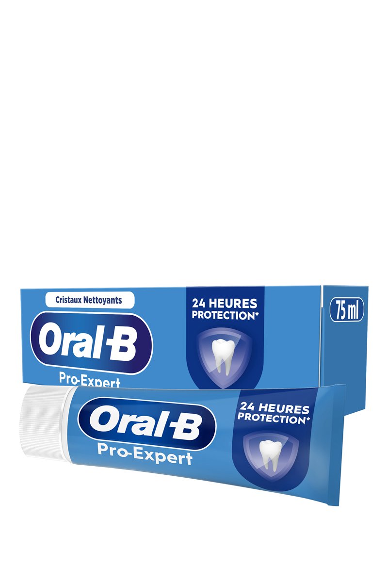Il a été prouvé cliniquement que le dentifrice Oral-B Pro-Expert Protection Professionnelle Nettoyant Cristaux offre 24 heures de protection lorsqu'il est utilisé deux fois par jour.