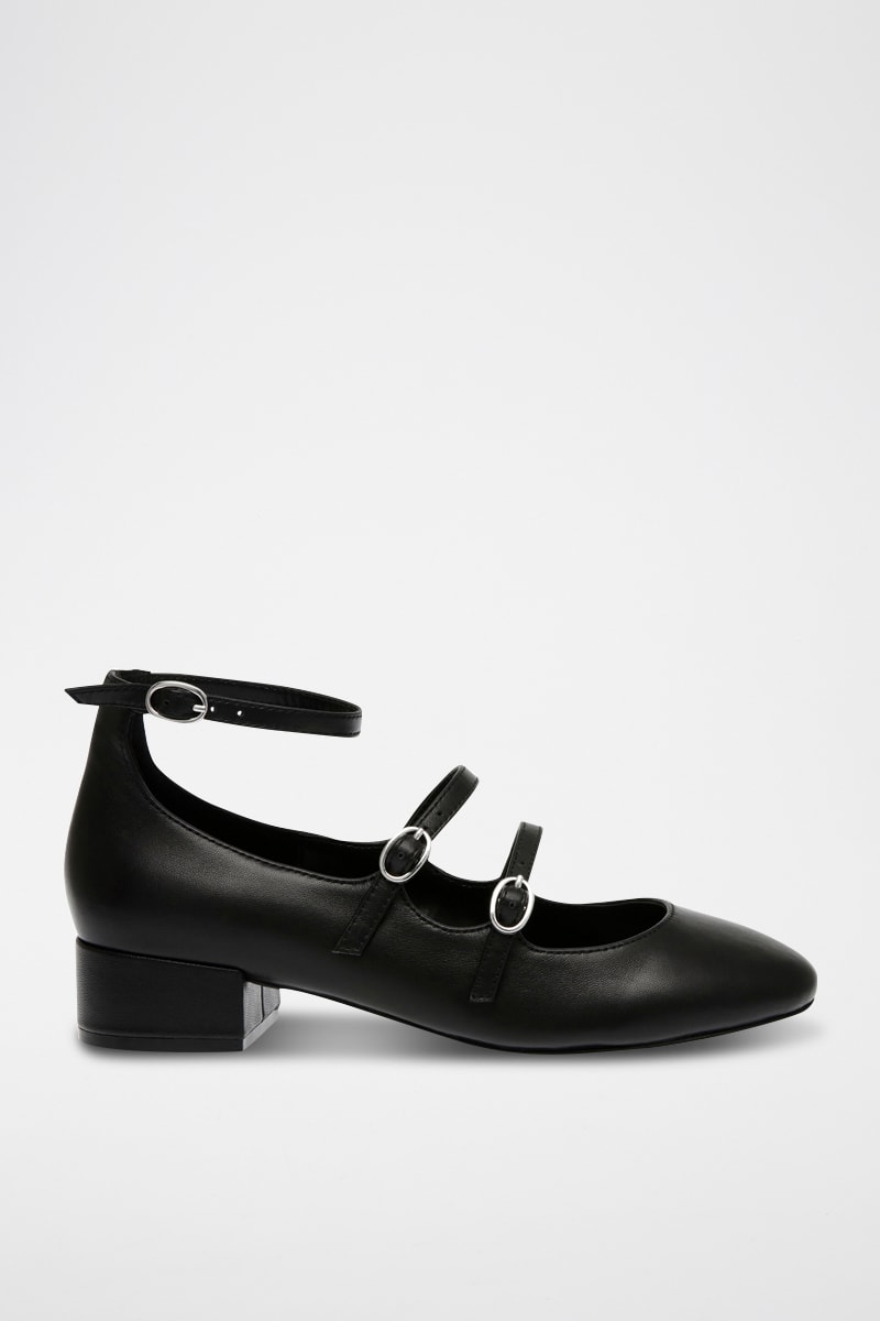 Babies à talons en cuir de mouton - Noir