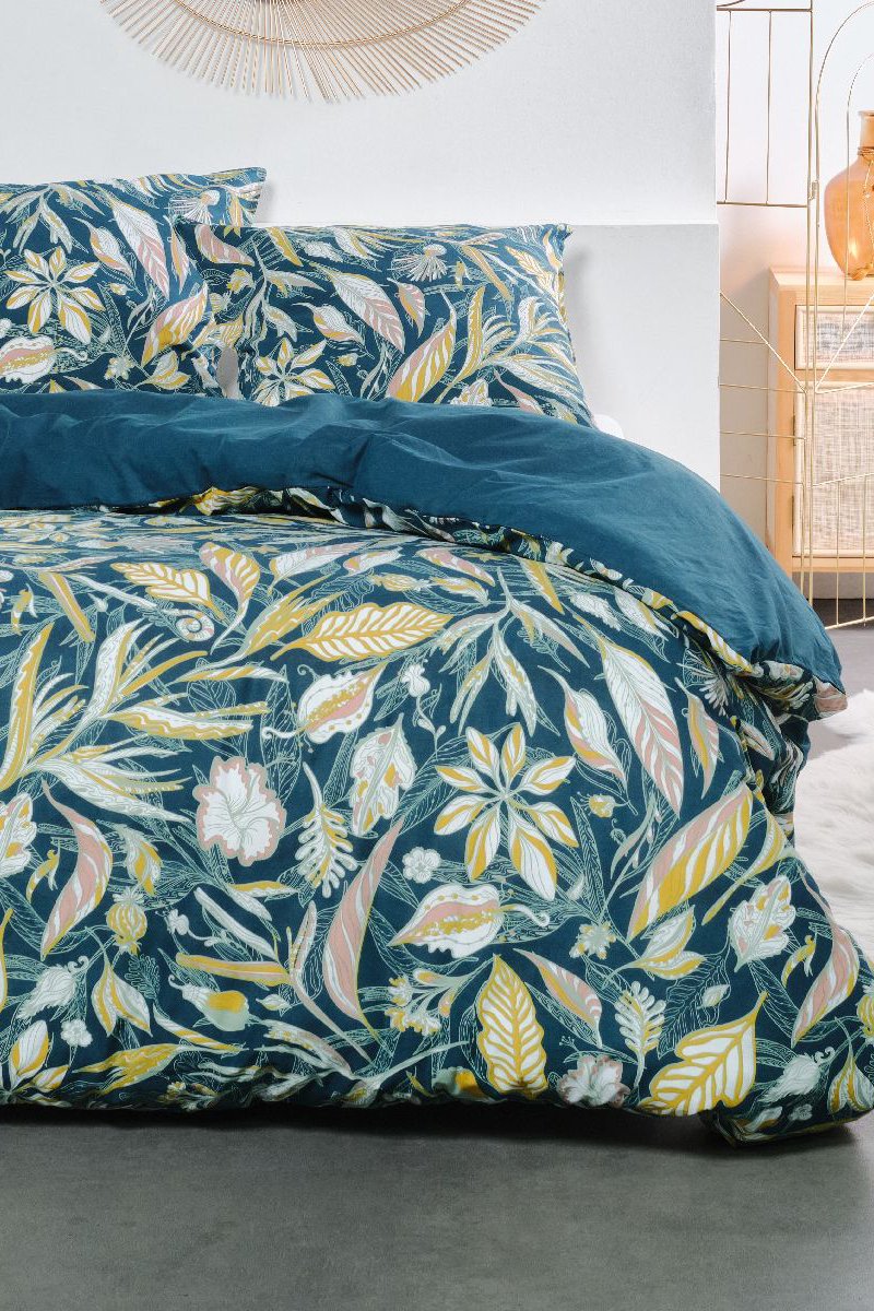 Parure de couette en coton 57 fils/cm² Sunshine - Bleu canard et jaune