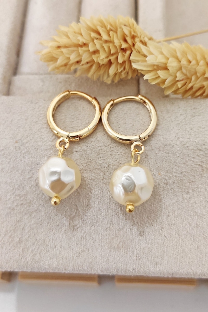 Boucles d’oreilles serties d’une perle d’imitation.