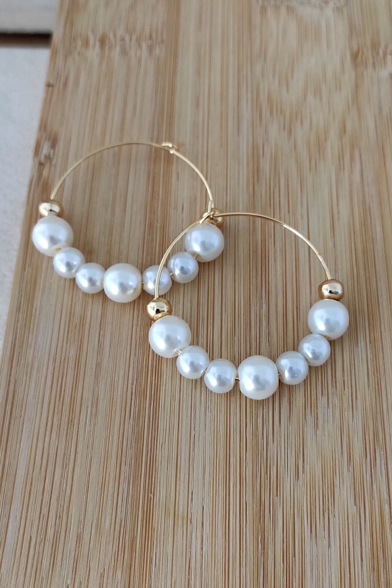 Créoles serties de 7 perles d’imitation.