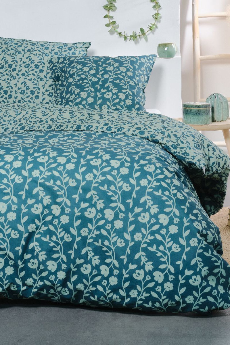 Parure de couette en coton 57 fils/cm² - Bleu pétrole