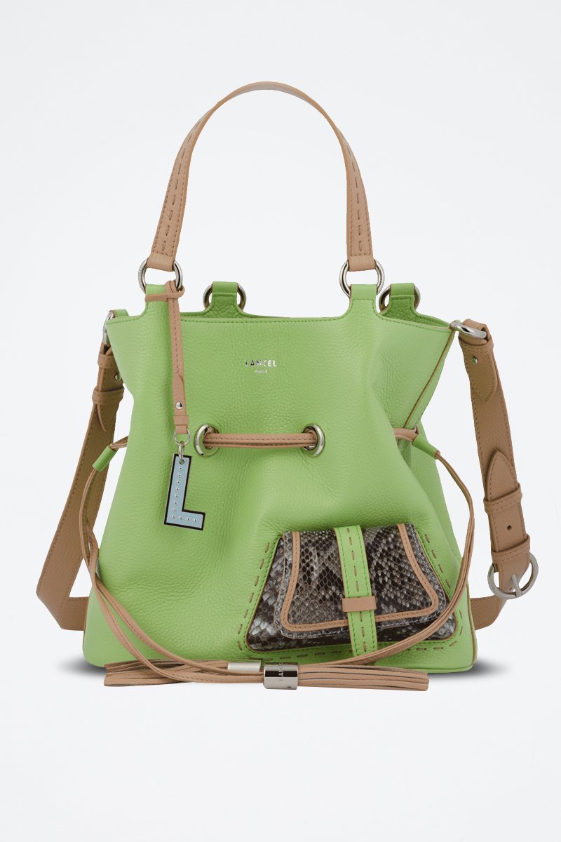 Sac seau en cuir de python et cuir.