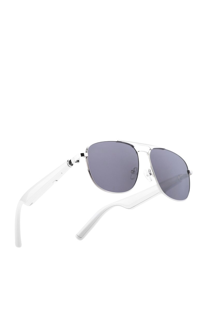 Lunettes de soleil polarisées et connectées Mogie - Modèle Nexis - Bluetooth - Argenté et blanc