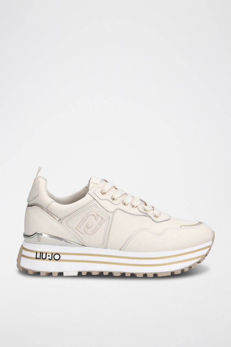 Sneakers plateformes en cuir de taureau Maxi Wonder - Beige