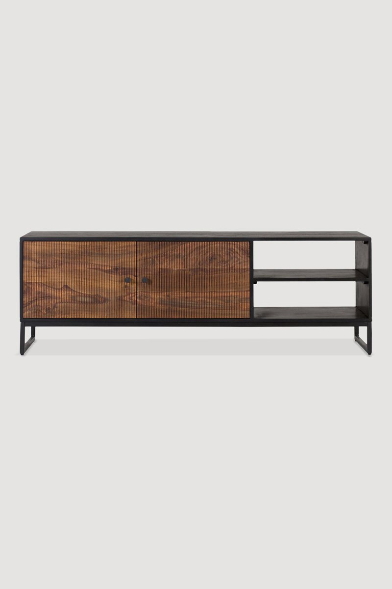 Meuble TV 2 portes en bois de rose et manguier - 50 x 150 x 40 cm