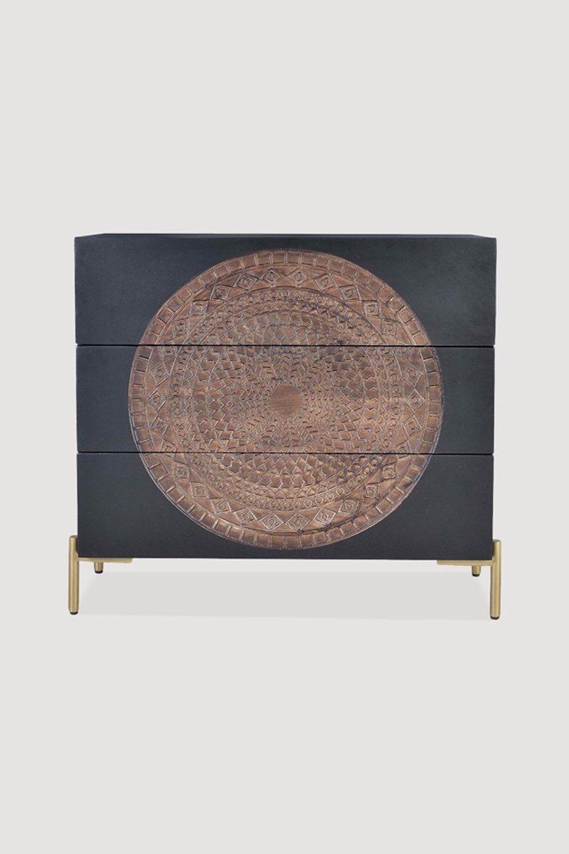 Commode 3 tiroirs en bois de manguier - 95 x 90 x 40 cm