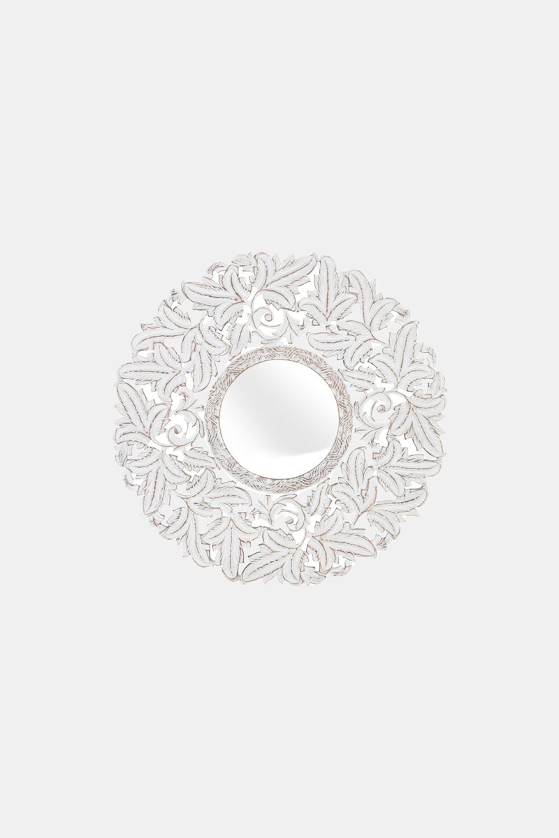 Ce miroir rond, sculpté à la main sur du MDF, est une pièce qui allie un savoir-faire délicat et un design aux riches influences culturelles.