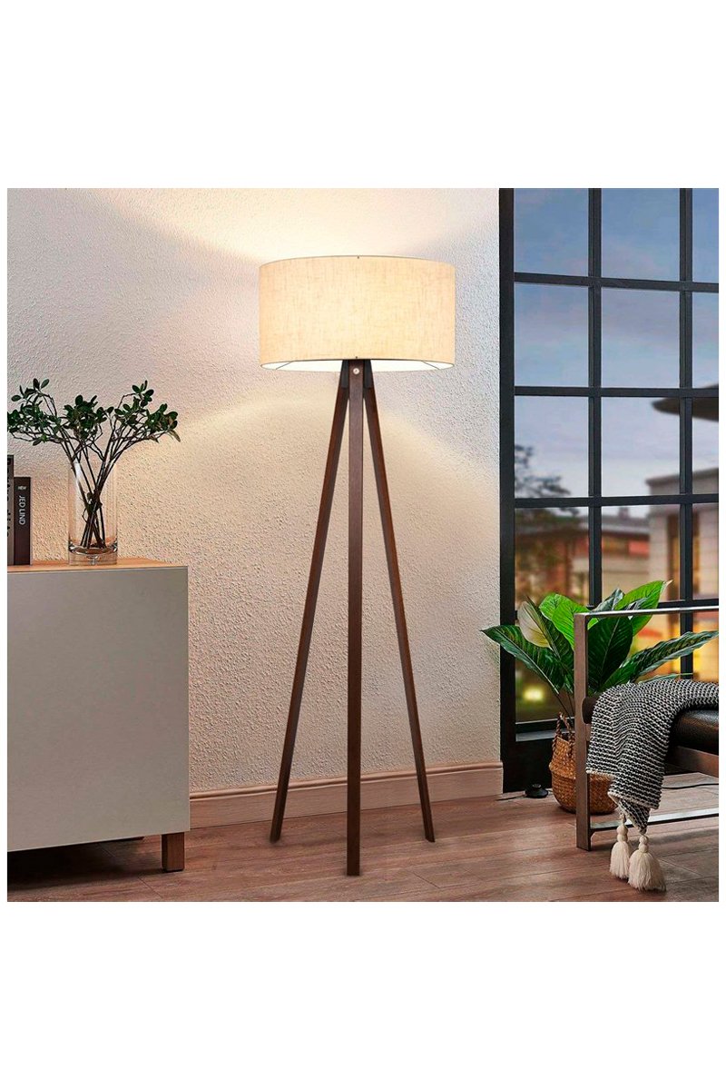 Lampadaire trépied en bois Ayd - Naturel et beige - 60 W
