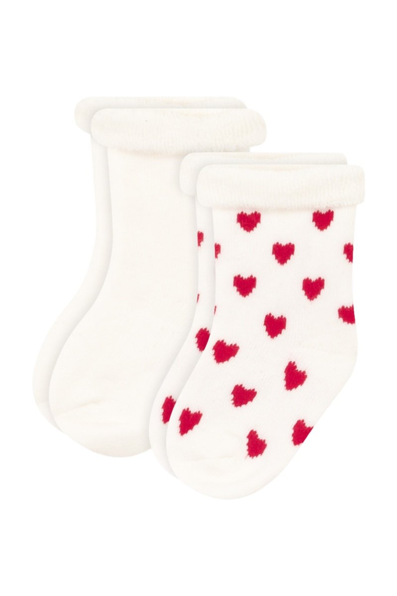 3 paires de chaussettes dont 1 à motifs cœurs.