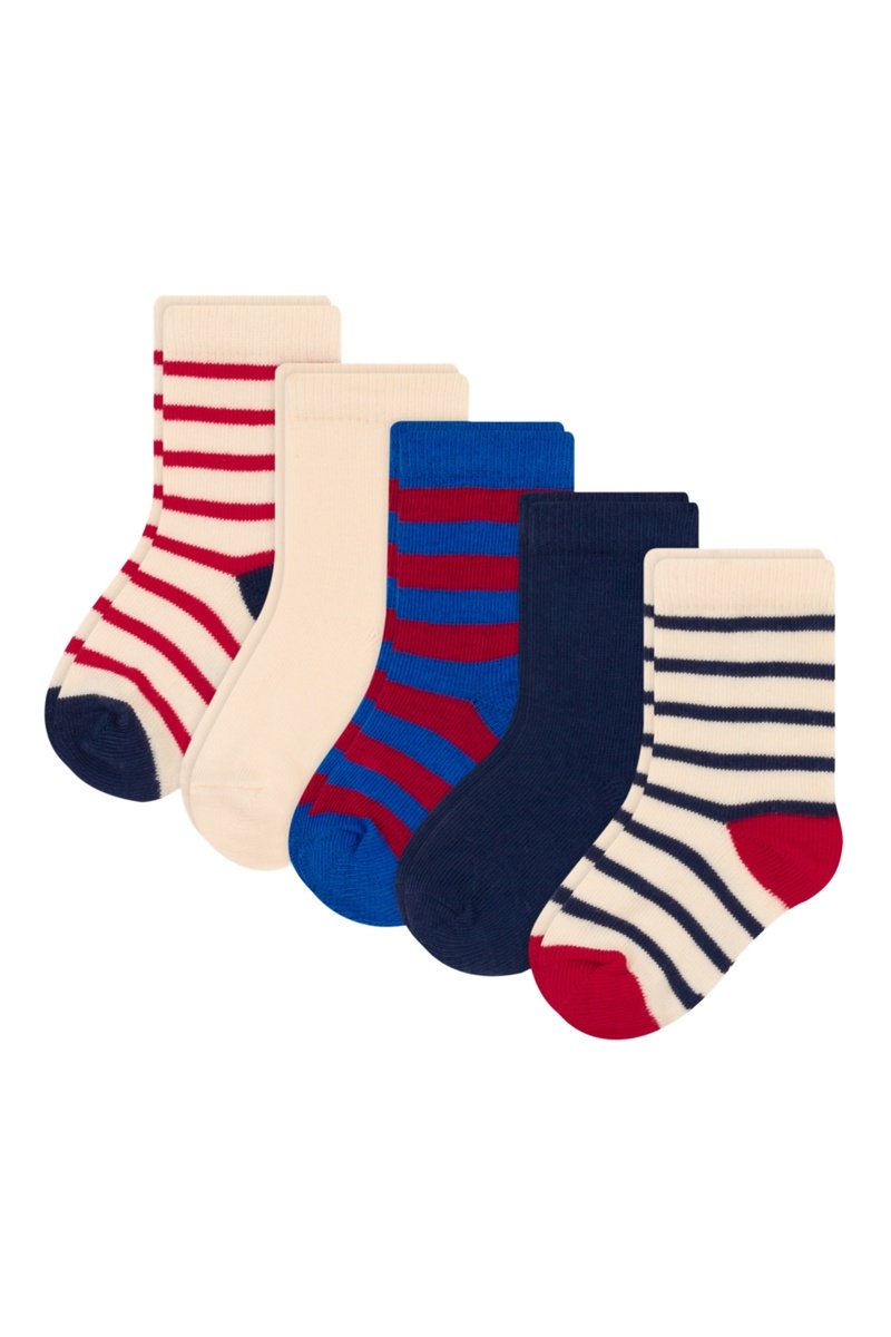 5 paires de chaussettes dont 3 à motifs à rayures.