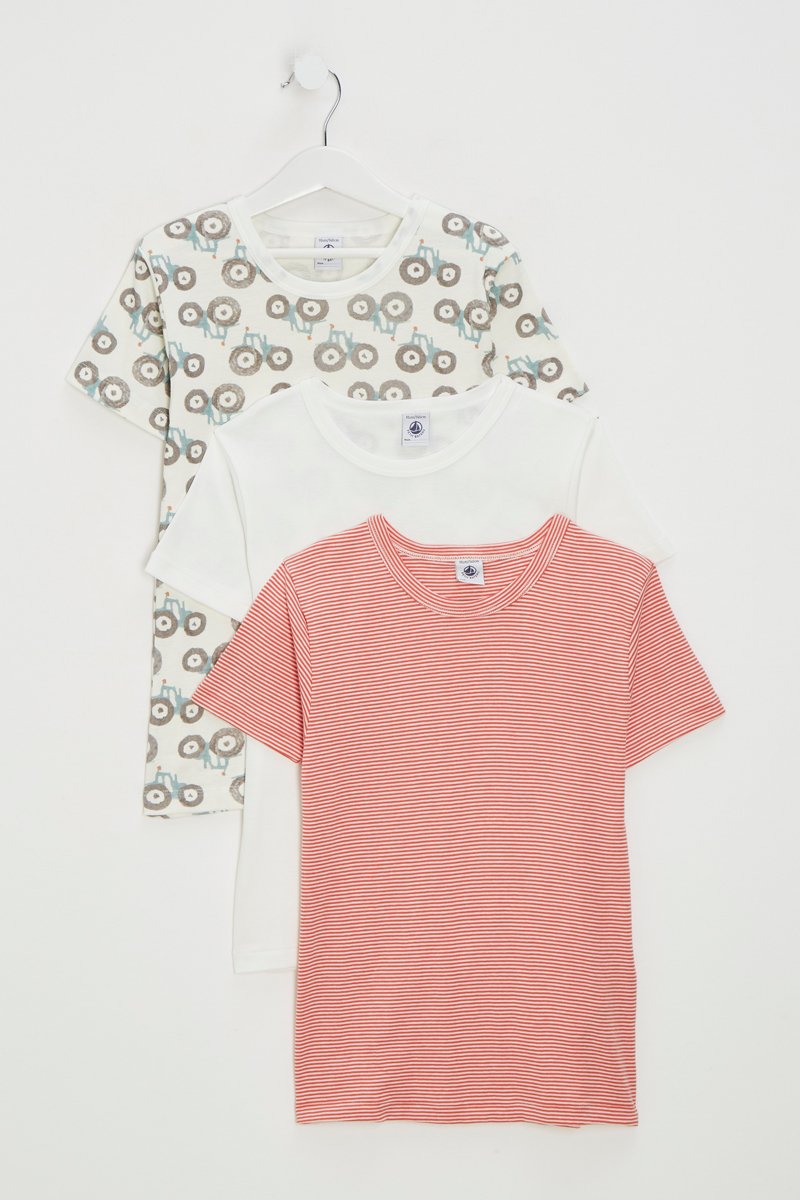 3 t-shirts dont 1 à motifs fantaisie et 1 à motifs à rayures.