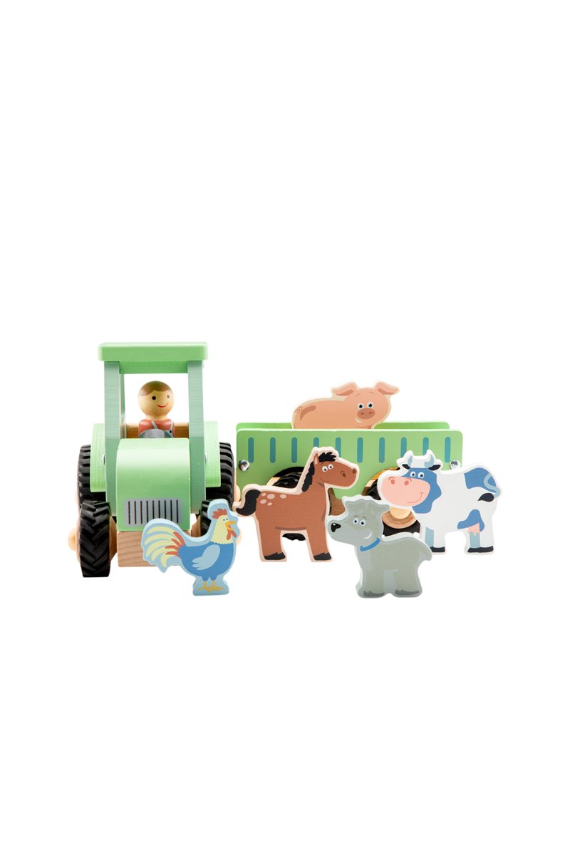 Tracteur avec remorque et 5 animaux en bois - Dès 18 mois