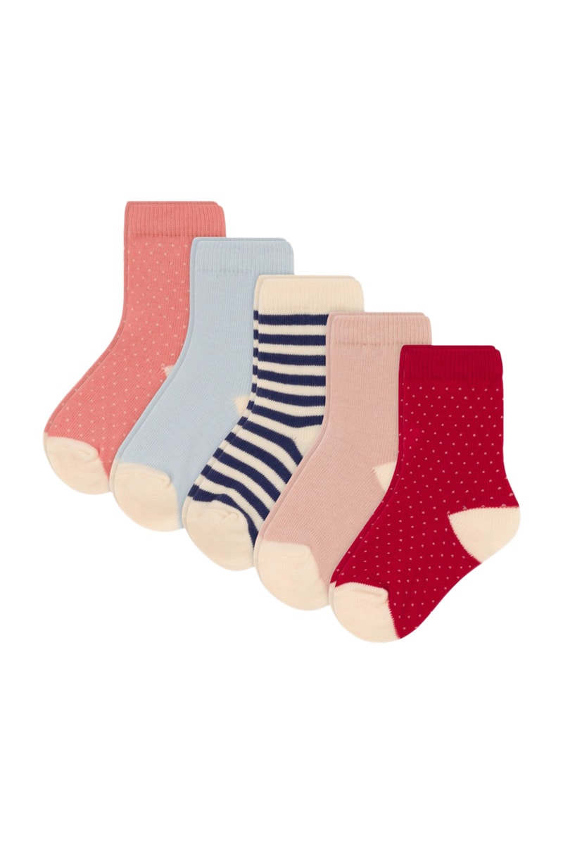 5 paires de chaussettes dont 1 à motifs à pois, 1 à motifs à rayures et 1 à motifs fantaisie.