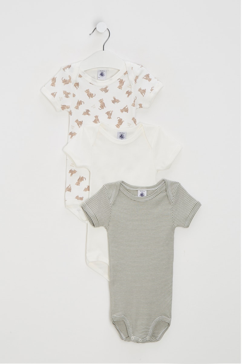 3 bodys dont 1 à motifs léopard et 1 à motifs à rayures.