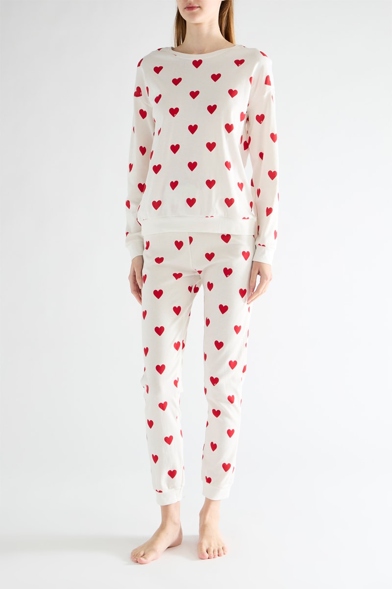 Pyjama à motifs cœurs comprenant :