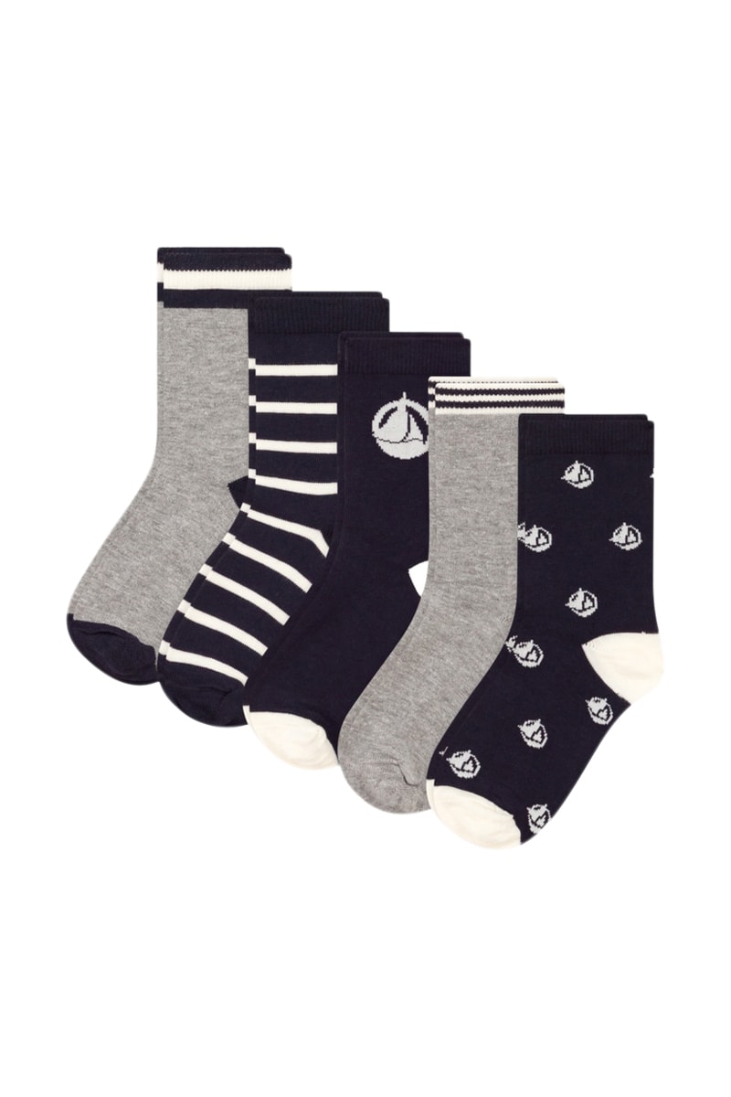5 paires de chaussettes - Bleu marine et gris clair chiné