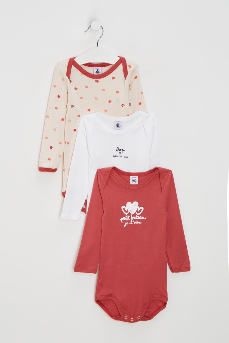 3 bodys - Beige, rouge et blanc