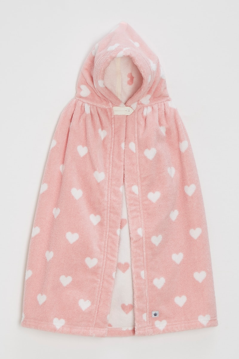 Cape de bain à capuche - Vieux rose et blanc