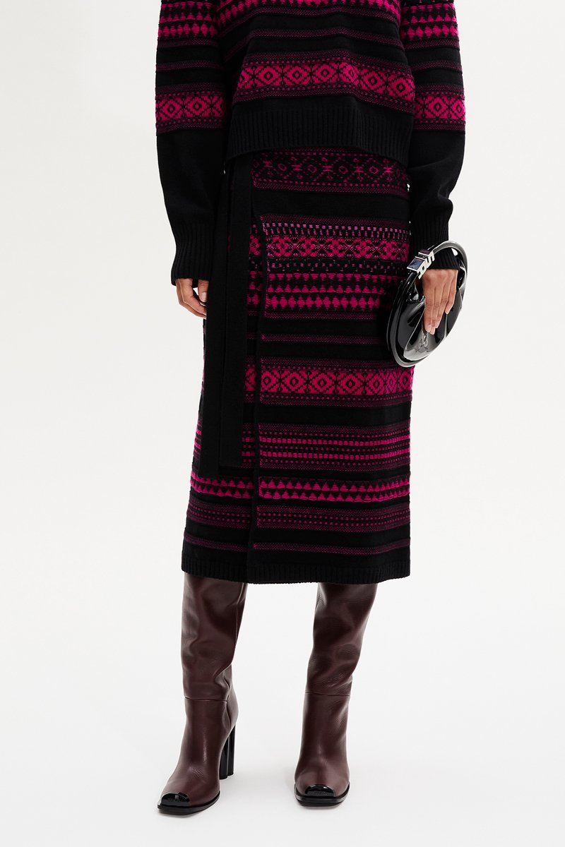 Jupe longue en laine - Noir et fuchsia