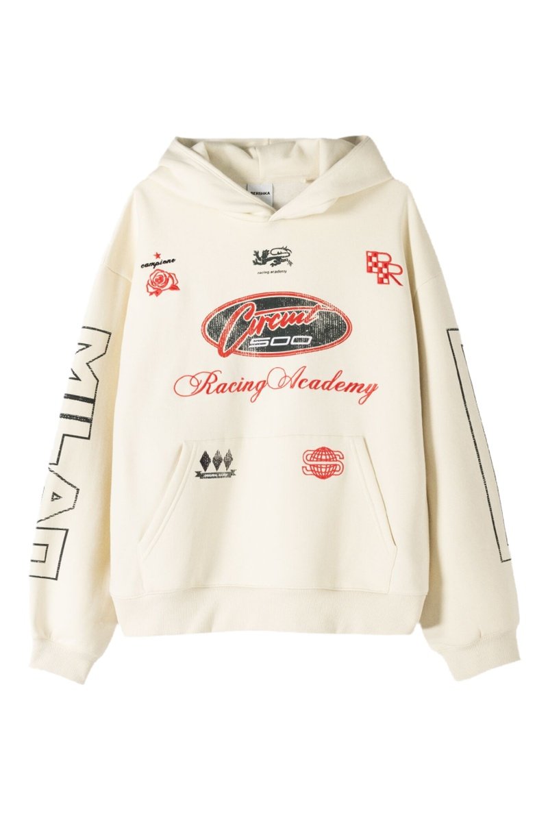 Chiffres, lettrage et motifs fantaisie sur les manches et devant.