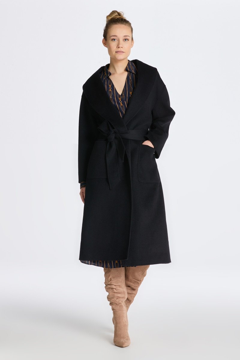 Manteau relaxed en laine mélangée à manches longues à épaules tombantes.