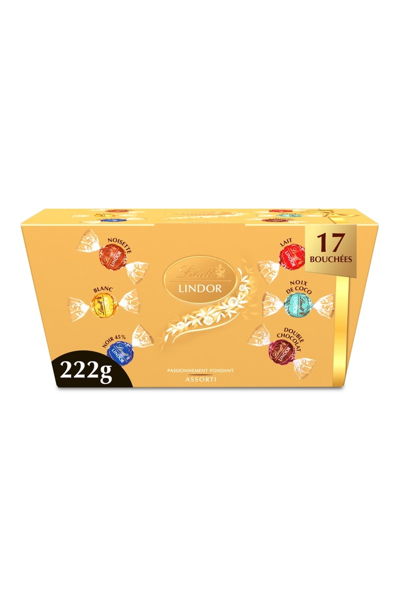 Découvrez le nouveau Ballotin LINDOR : un assortiment de six recettes LINDOR emblématiques au cœur irrésistiblement fondant dans un format cadeau. Fondez de bonheur avec LINDOR, créé par les Maîtres Chocolatiers Lindt.