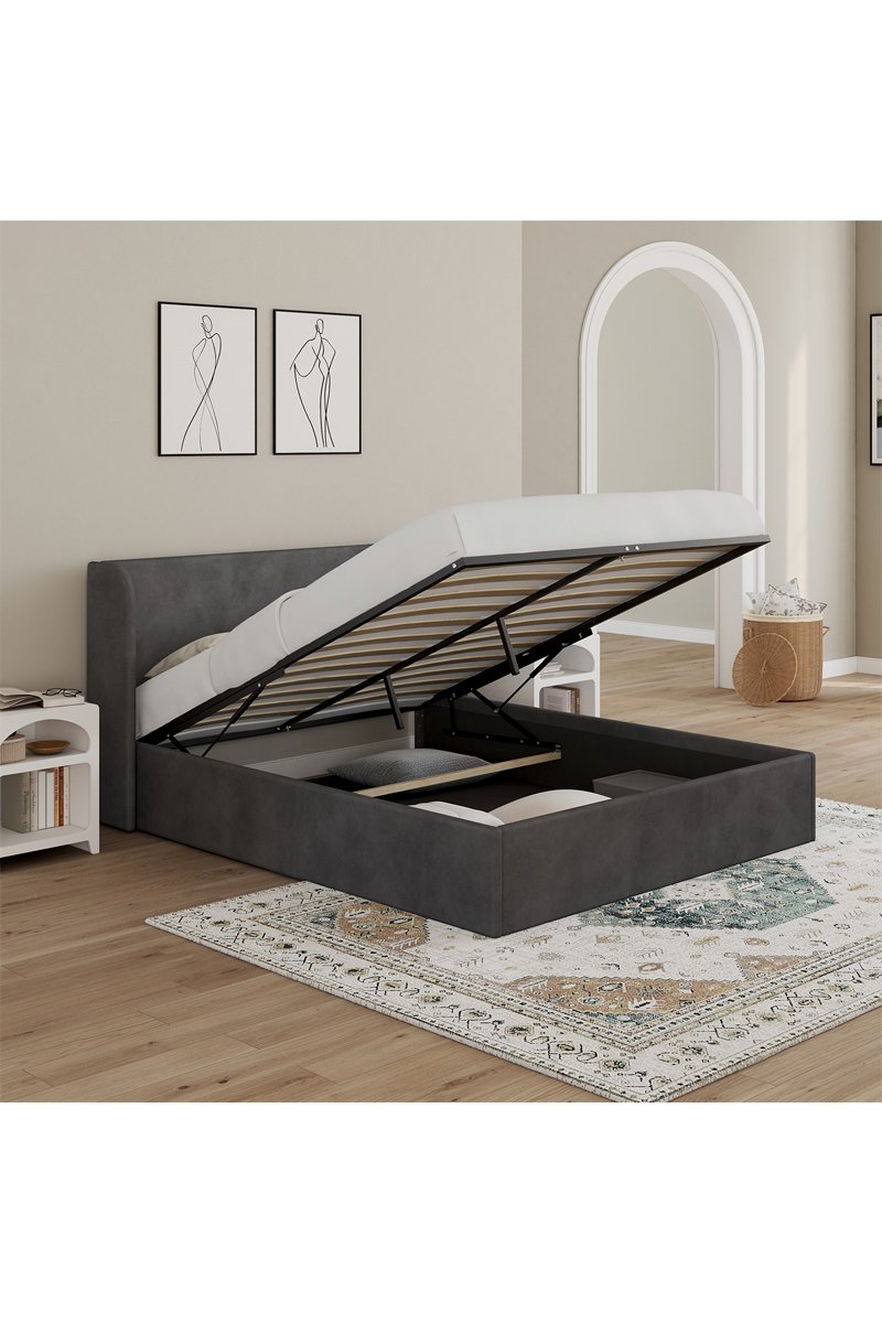Coffre de rangement sous le sommier.