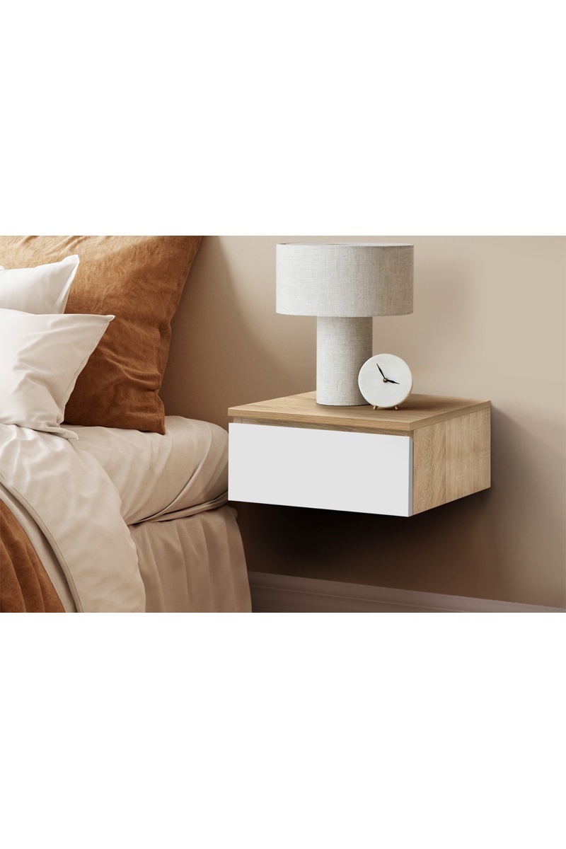 Tables de chevet suspendues Tom 1 tiroir bois et blanc - lot de 2