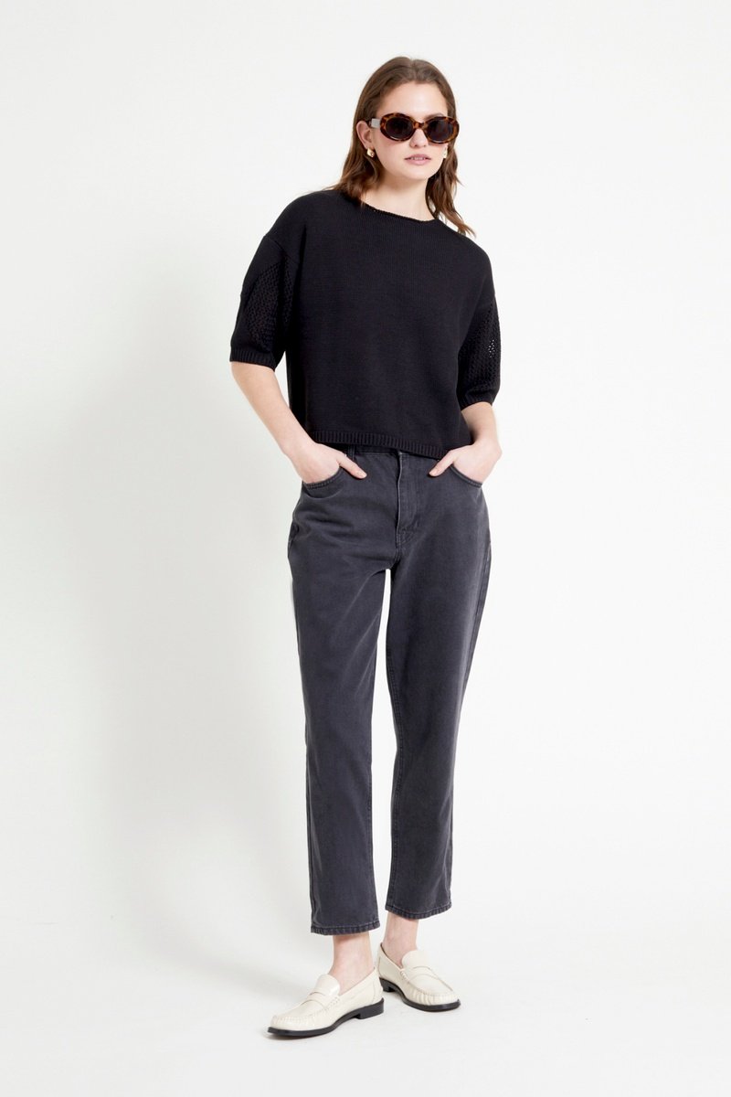 Top à manches courtes en maille ajourée.
