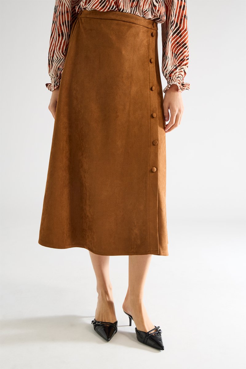 Jupe midi taille haute - Marron clair