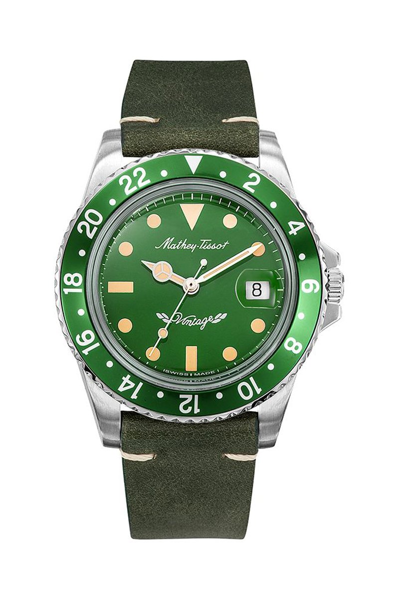 Montre automatique en cuir Mathy Vintage - Vert et argenté