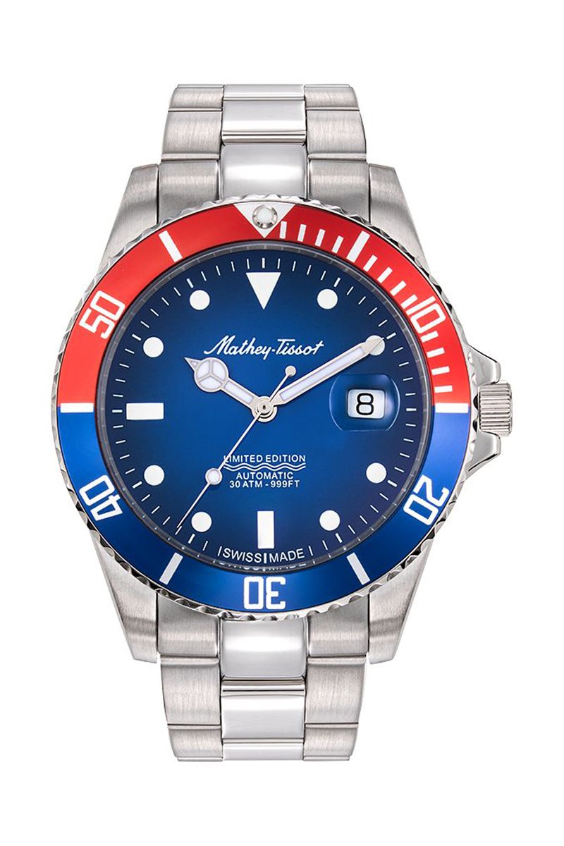 Montre automatique en acier Mathy vintage jumbo - Argenté et bleu