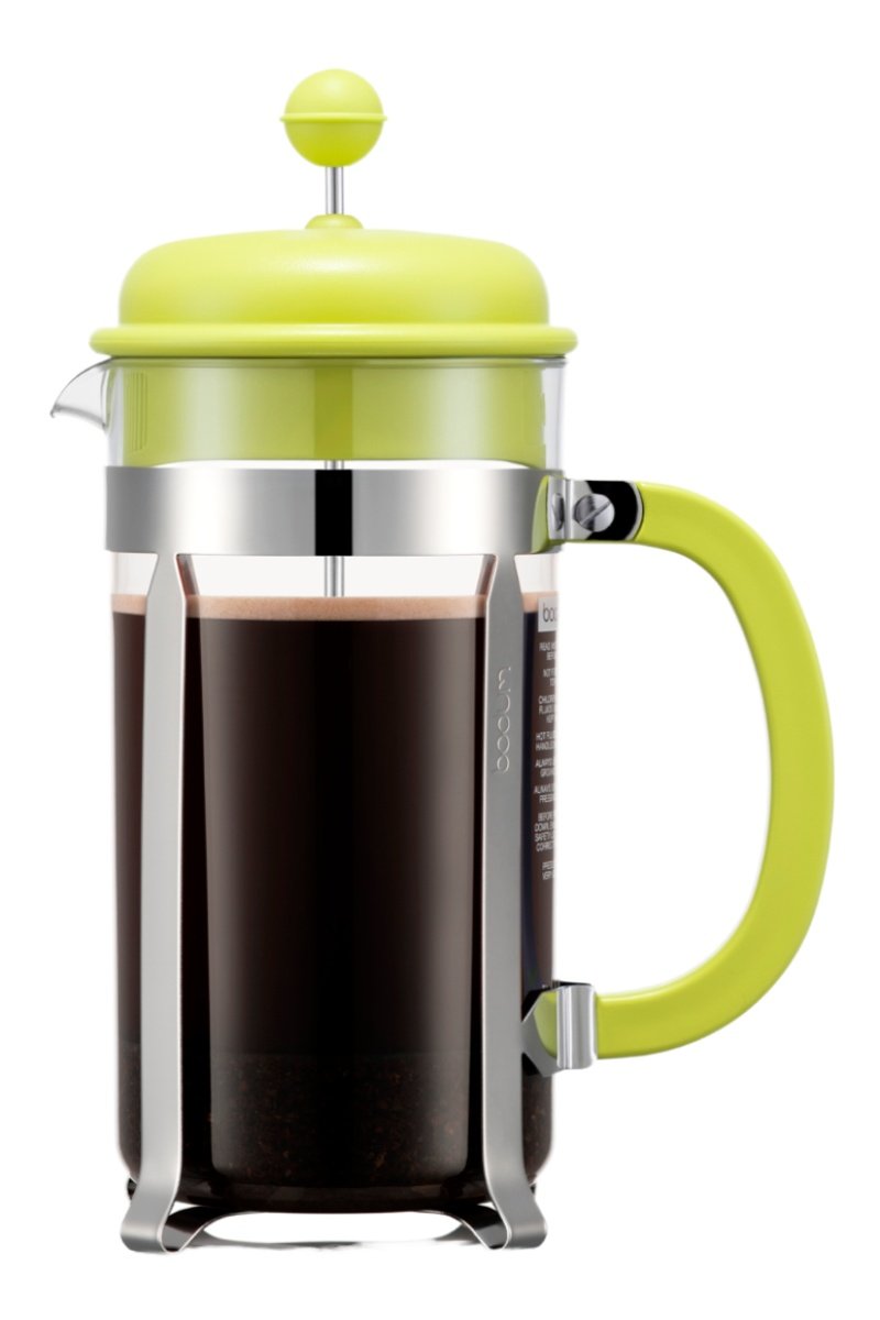 Conseil d’utilisation : placer la cafetière Caffettiera sur une surface plate, maintenir la poignée fermement et pousser le piston de la carafe. Pour chaque tasse ou 12 cl d'eau, ajouter une généreuse cuillère à café ou cuillère de dosage Bodum de café en gros grains. Verser de l'eau chaude dans la carafe (d'une température d'environ 92 °C à 96 °C), remplir jusqu'à 2,5 cm du bord, et mélanger avec une cuillère en bois ou en plastique. Mettre le piston au-dessus du pot et tourner le couvercle de sorte que le bec verseur soit fermé pour retenir la chaleur. Laisser infuser 4 min, puis rabattre lentement le piston. Dévisser le couvercle pour ouvrir le bec verseur et servir.
