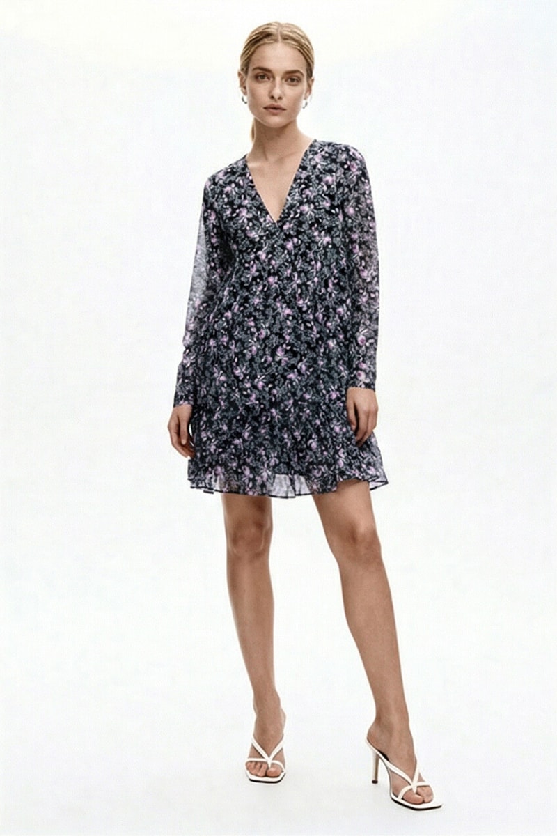 Robe trapèze à manches longues.