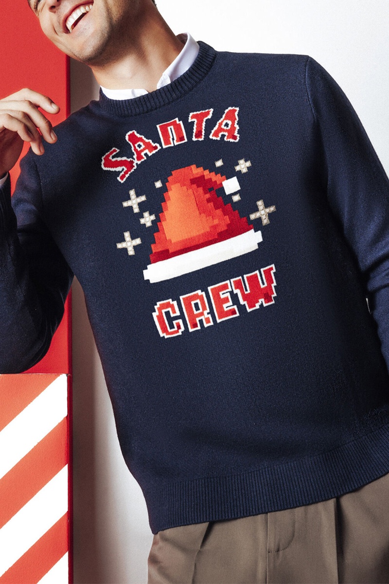 Ce pull de Noël "Santa crew" col rond, orné d'un motif de Noël, vous plongera dans l'ambiance des fêtes. Disponible en version enfant, c'est une très bonne idée de cadeau pour un duo père-fils !