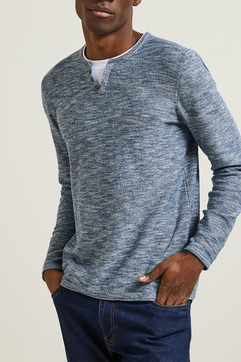 Ce pull col tunisien apporte une touche fantaisie à votre tenue. La doublure en jersey au col offre un style décontracté et confortable.