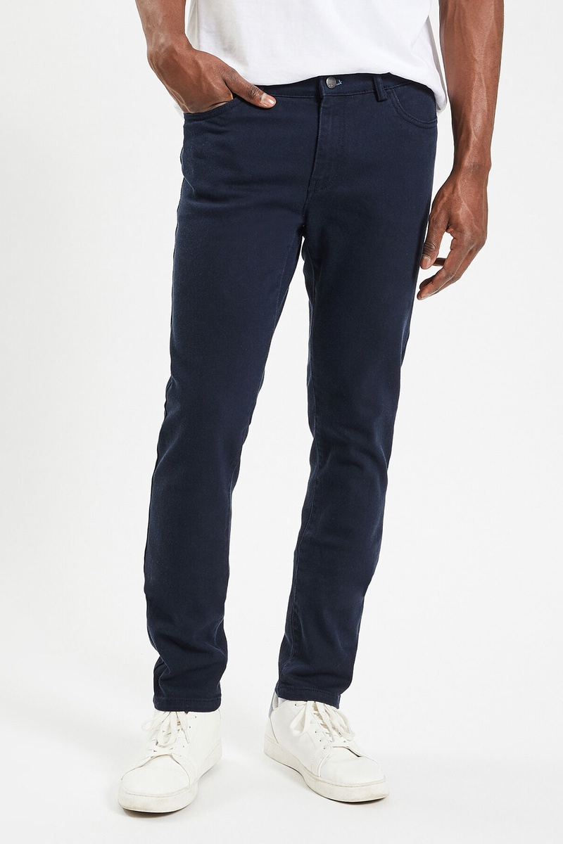 Coupe slim, étroit sur la cuisse et sur toute la jambe.